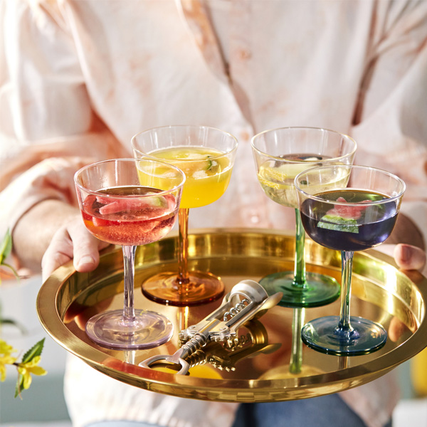為春季派對和晚餐增添節日氣氛!這四款色彩鮮豔的玻璃杯是盛裝美味飲品和甜點的最佳拍檔。