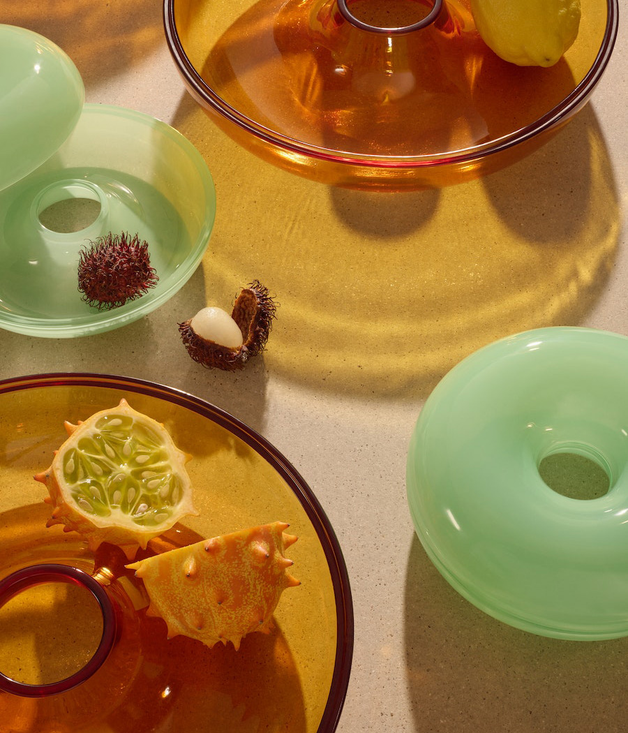冬甩是Sabine Marcelis的經典設計形狀之一,VARMBLIXT系列有兩款產品也採用這個形狀,包括有兩個大小的精緻玻璃碗,還有一盞壁燈/檯燈。