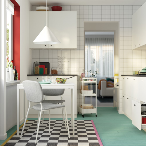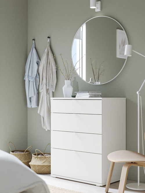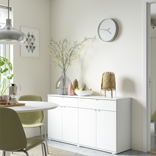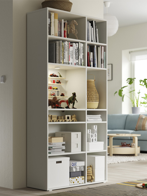 VIHALS 儲物系列讓您的 IKEA Home Smart 系統、 充電器和燈飾看上去更優雅整齊,這些電線都可以 穿過背面的洞口整齊地收起來。