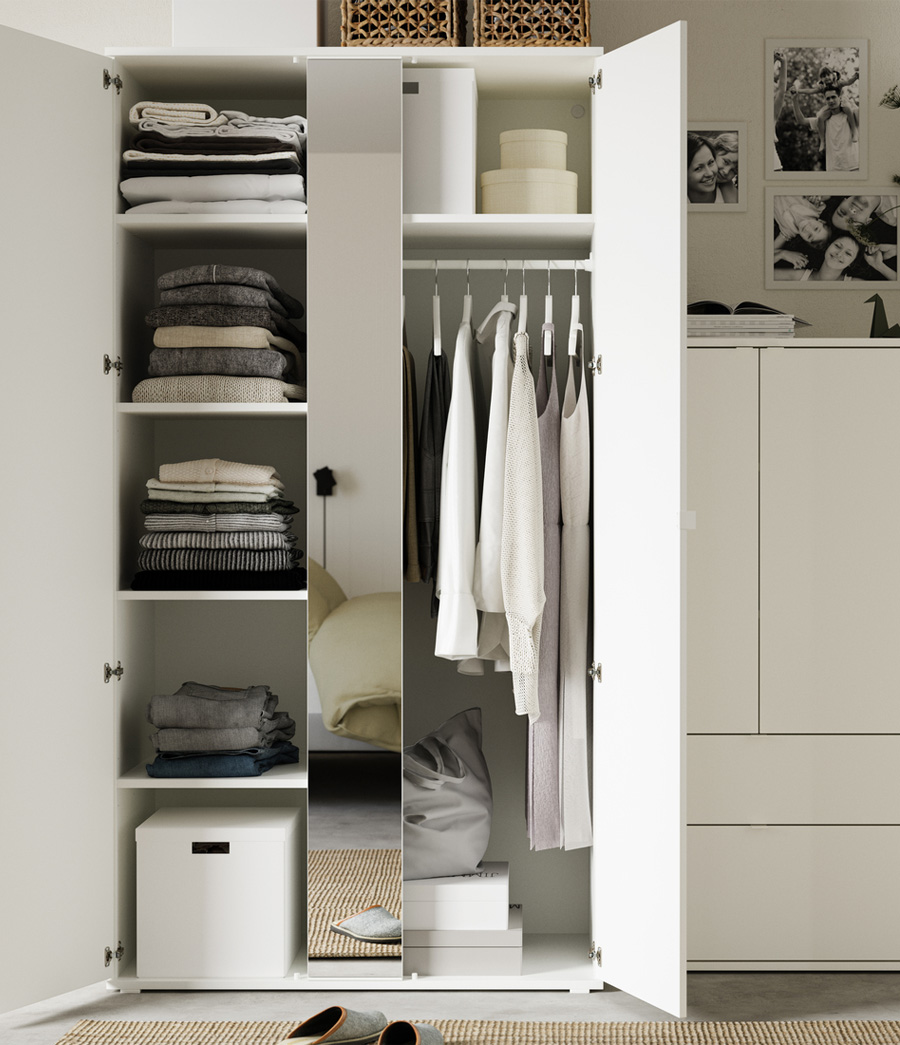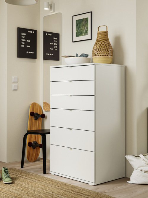 當組合兩個或多個 VIHALS 層架板組合時,其對齊層板的設計細節能打造無縫交接、風格統一的格局。