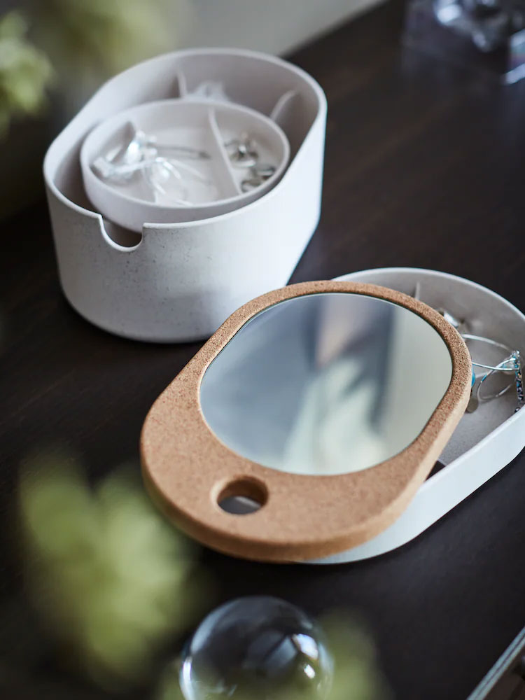 瑣碎小物最容易遺失,但一個有多個間隔的儲物盒,便能整齊放好經常佩戴的首飾,而且盒蓋配備鏡子,更加方便。