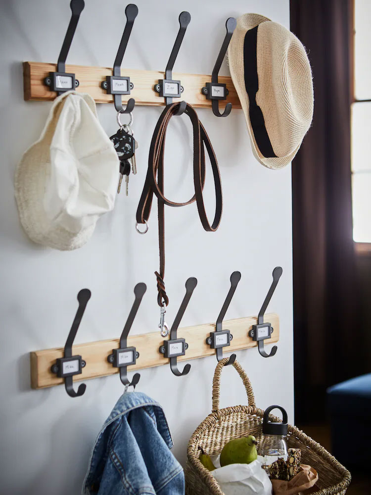 當玄關的衣物開始堆積如山或散落一地,便要出動掛鈎!貼上標籤清楚表明物品的位置,方便整理,最後別忘記安裝一排配合小朋友身高的掛鈎。