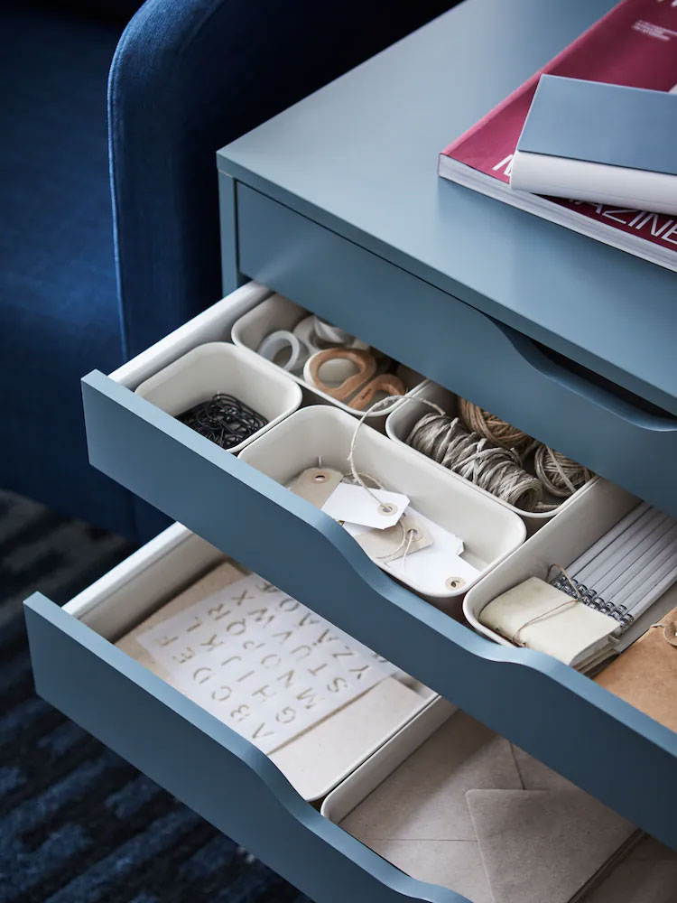 善用不同尺寸的儲物盒,便能將整理抽屜的技巧即時升級!所有物件都一目了然,有需要時更可以拿出所需的儲物盒。