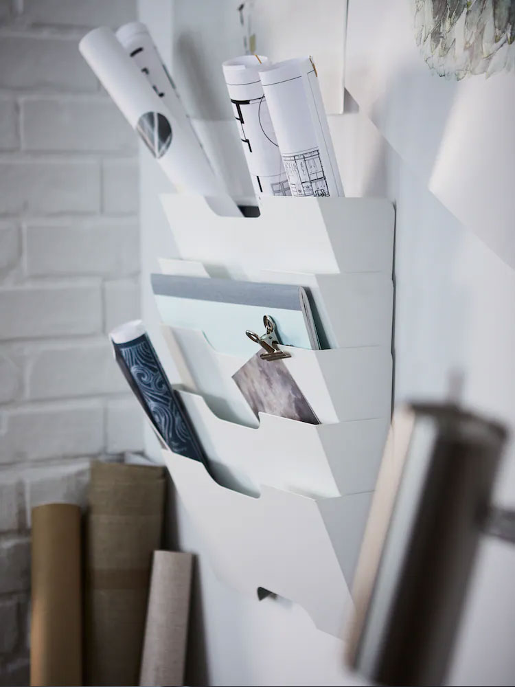 牆身儲物能節省空間,輕易收服雜物,但掛牆報紙架除了可以擺放報紙和信件,也能收納形狀奇特的物件,方便隨時拿取。