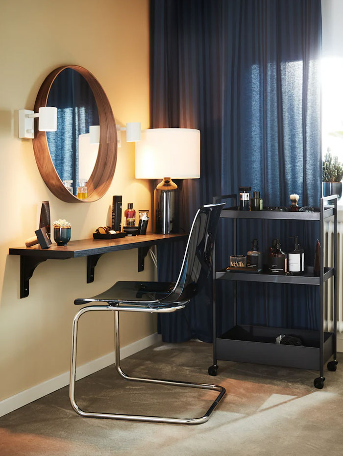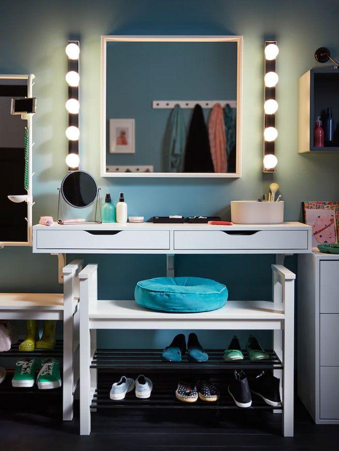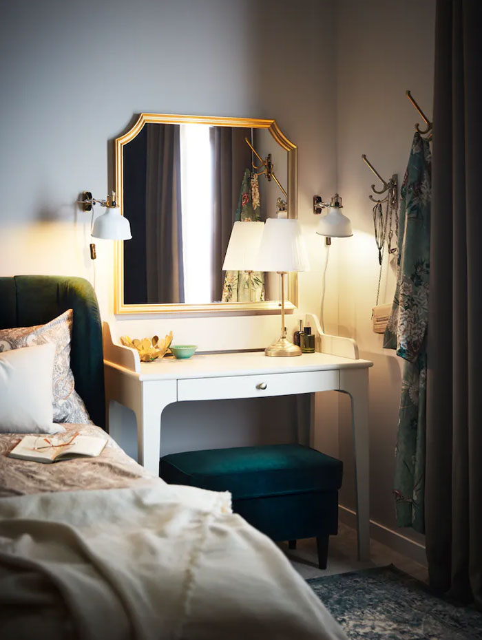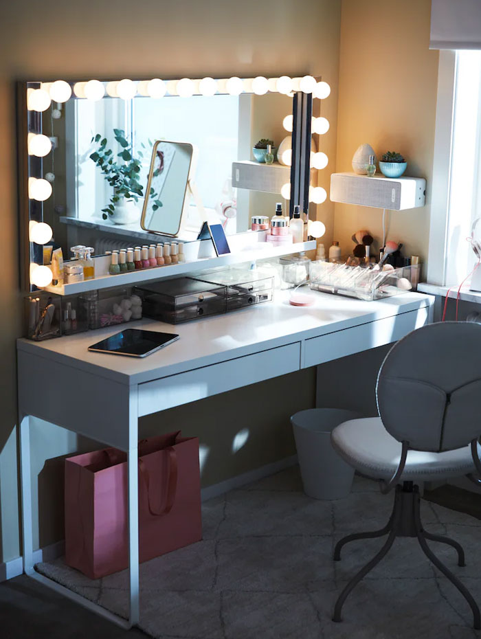 如果你喜歡化妝打扮,不妨盡情打造最合心意的梳妝枱。挑選一張有大量儲物空間的梳妝枱,一張久坐也舒服的椅,還有一面提供明亮燈光的大鏡。