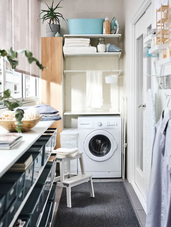 可以靈活改裝的儲物組合,讓你善用露台另一端的空間,打造實用的洗衫專區,既有封閉和開放式的儲物空間,也有擺放洗衣機的位置。