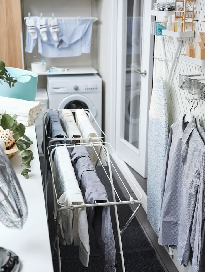 可摺疊的曬衣架非常適合細小空間,用完後可以藏起,不會佔用空間。記得打開露台的窗令空氣更流通,衣物更快乾。