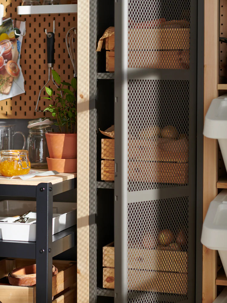 只要條件合適,根莖類蔬菜可以長時間保存,甚至可以存放整個冬天。配以網門的儲物櫃能營造昏暗通風的環境,保持蔬菜新鮮,下廚時也方便拿取所需食材。
