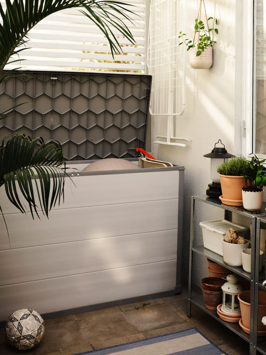 無懼風雨的大型塑膠儲物箱的用途百變,例如最適合存放戶外傢具的咕𠱸和座墊,如果是可摺起的小型傢具,更可以一併放進去。
