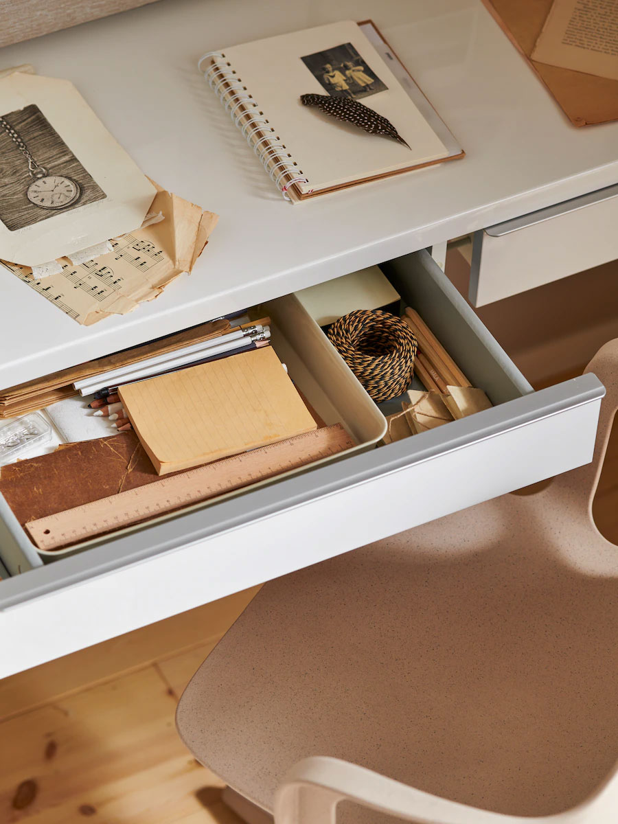 輕鬆找到想要的物品能節省不少時間。由於零碎的物件特別容易亂作一團,不妨使用間隔和儲物盒加以整理,全面升級抽屜的收納能力。