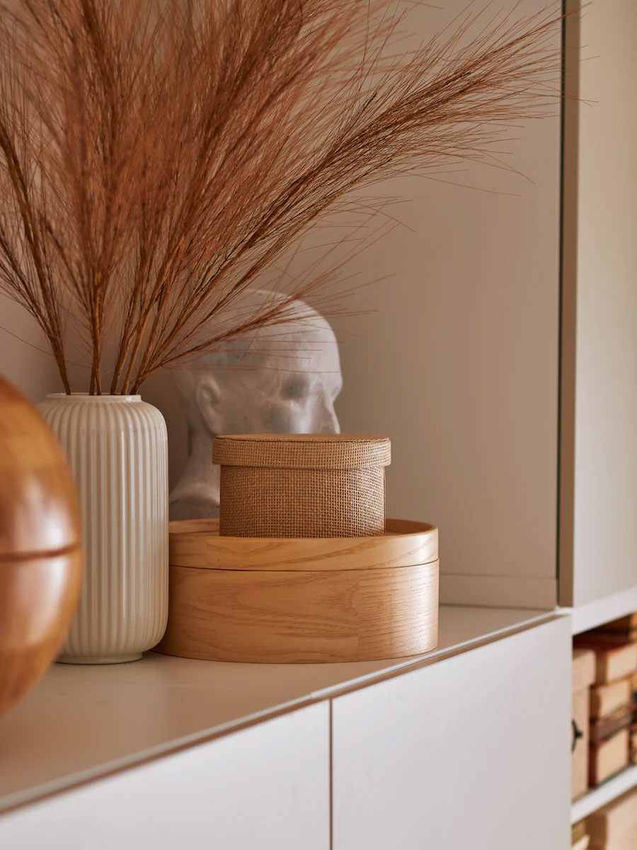 將儲物盒和擺設放在一起,不但方便收納瑣碎小物,也賞心悅目。選用配合房間風格的顏色,但混搭不同質感,便能宣示個人品味。