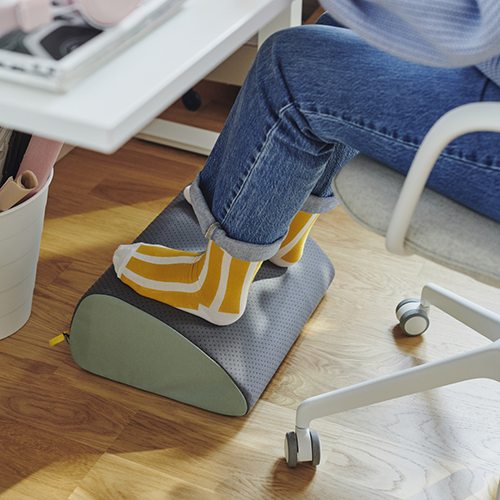偶然站著工作能促進血液循環,有益健康。厚實的 FREIVID腳踏墊配以可機洗的布套,加倍舒適。把雙腳放在DAGOTTO腳踏,便能保持良好的坐姿,紓緩身體壓力,而符合人體工學的 ÖVNING多功能腳踏亦能承托腰部、膝蓋和足踝,令疲勞一掃而空。