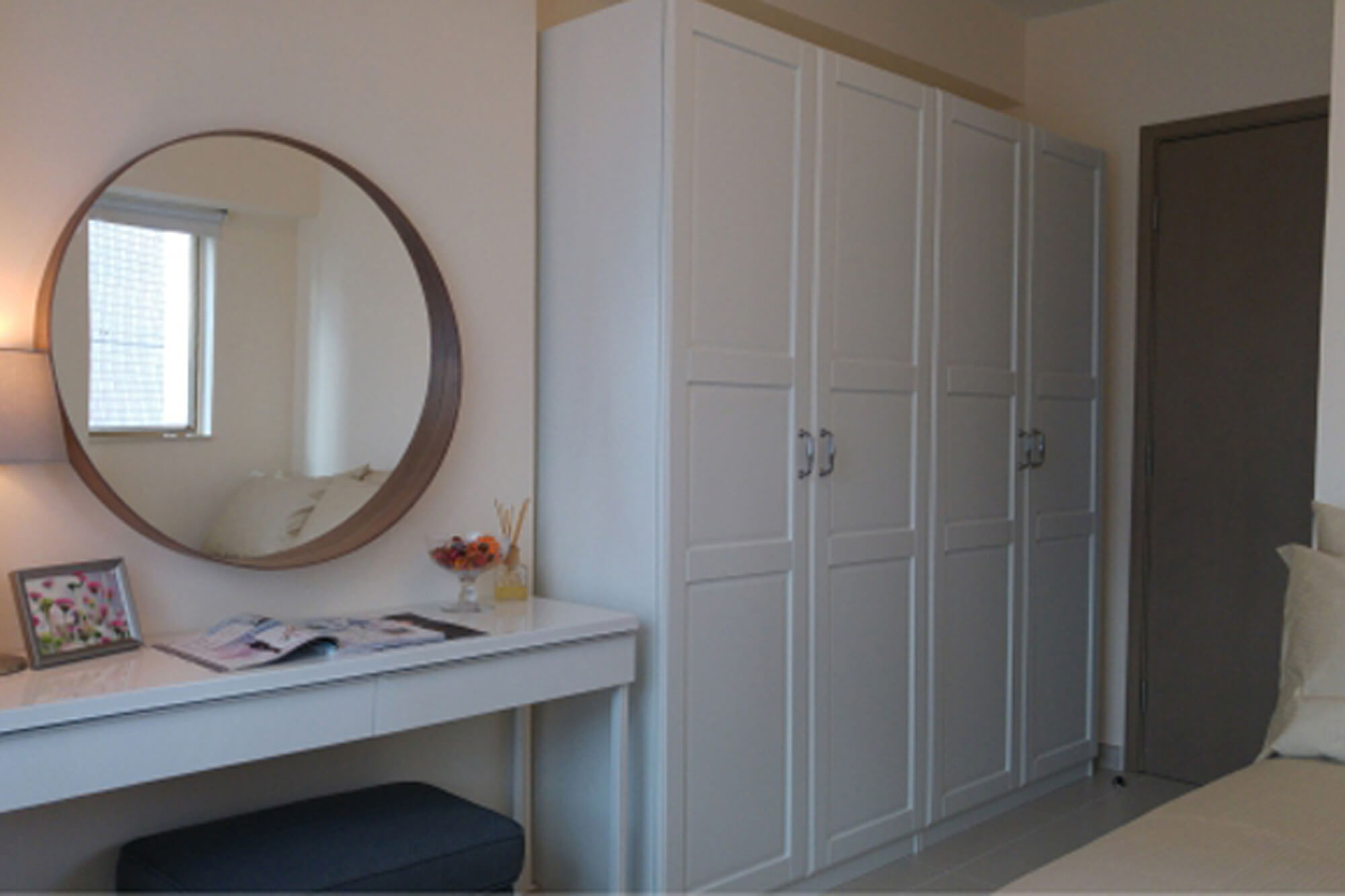 我們設計這個單位時,主要以白色色調為主、強調簡單性,從而達致屋內更明亮、乾淨簡潔效果,大大加強空間感。 傢具方面,亦運用到透明或玻璃面使家居更開揚;配合小量的黑、金色裝飾品,襯托出簡約而時尚的一面。