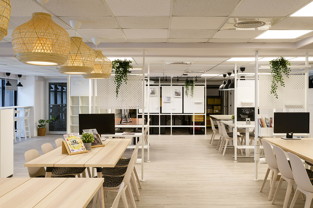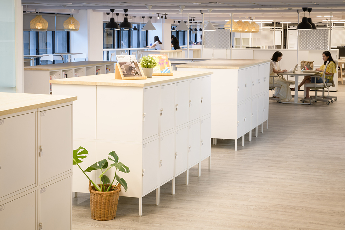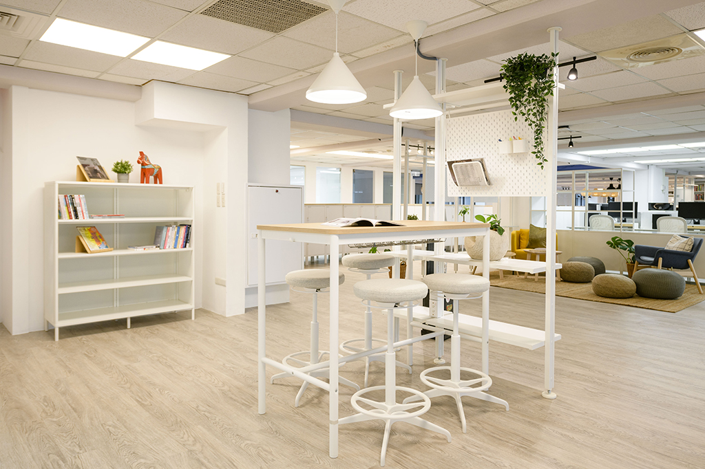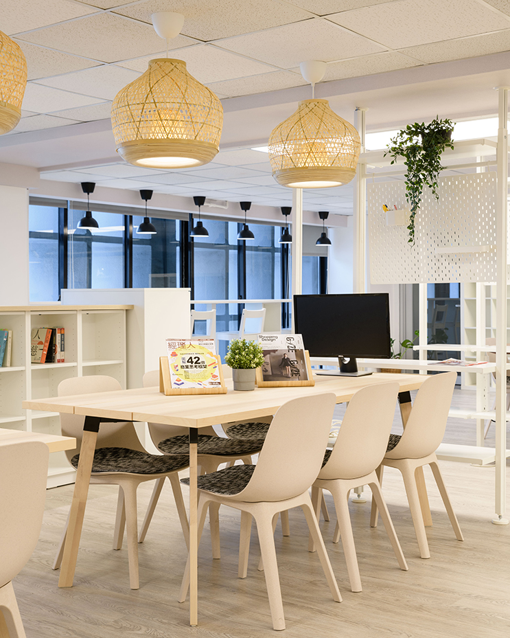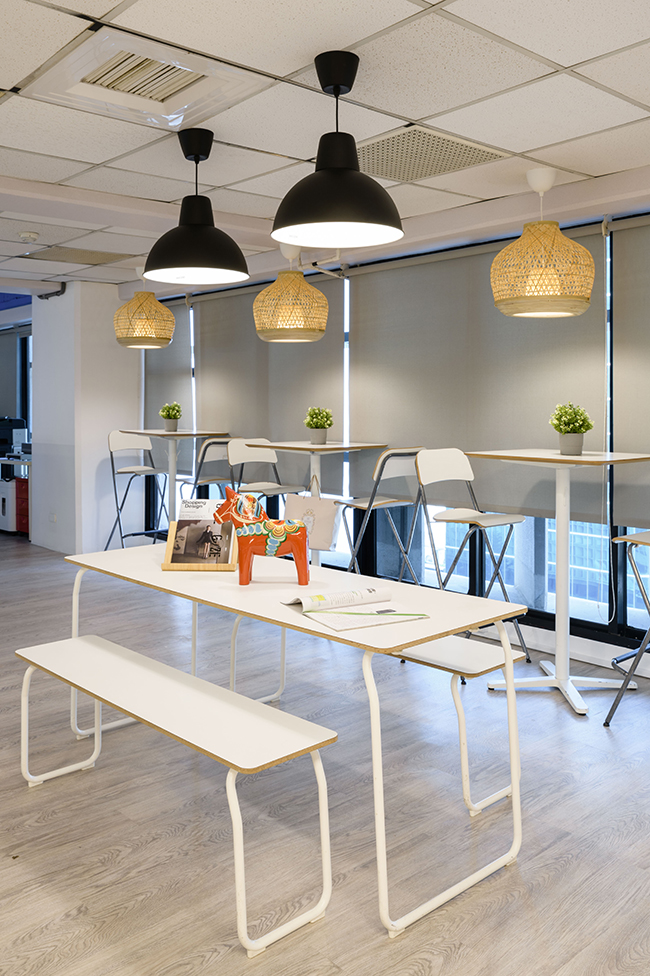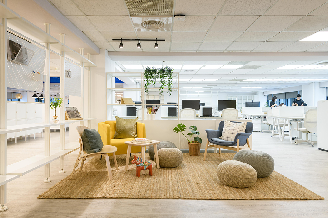 空間採用以人為本的設計,透過蒐集員工對辦公室的想法,辦公室採用了北歐流行風、建立出簡約清爽的整體視覺。另針對疫情後的辦公型態需求,擴充協作與會議空間以提升工作效率;在窗邊座位區工作的同事可不受干擾、安靜專注地辦公,寬闊的景觀亦能令人放鬆緊張情緒;頂天立地的貯物櫃不僅可收納、展示、區隔空間,也能有效收整電線,是讓空間更井井有條的絕佳選擇;色彩鮮明的茶水間內擺放顏色不一的扶手椅,為公共區域添增趣味,也是同事日常交流、享受咖啡的好地方。