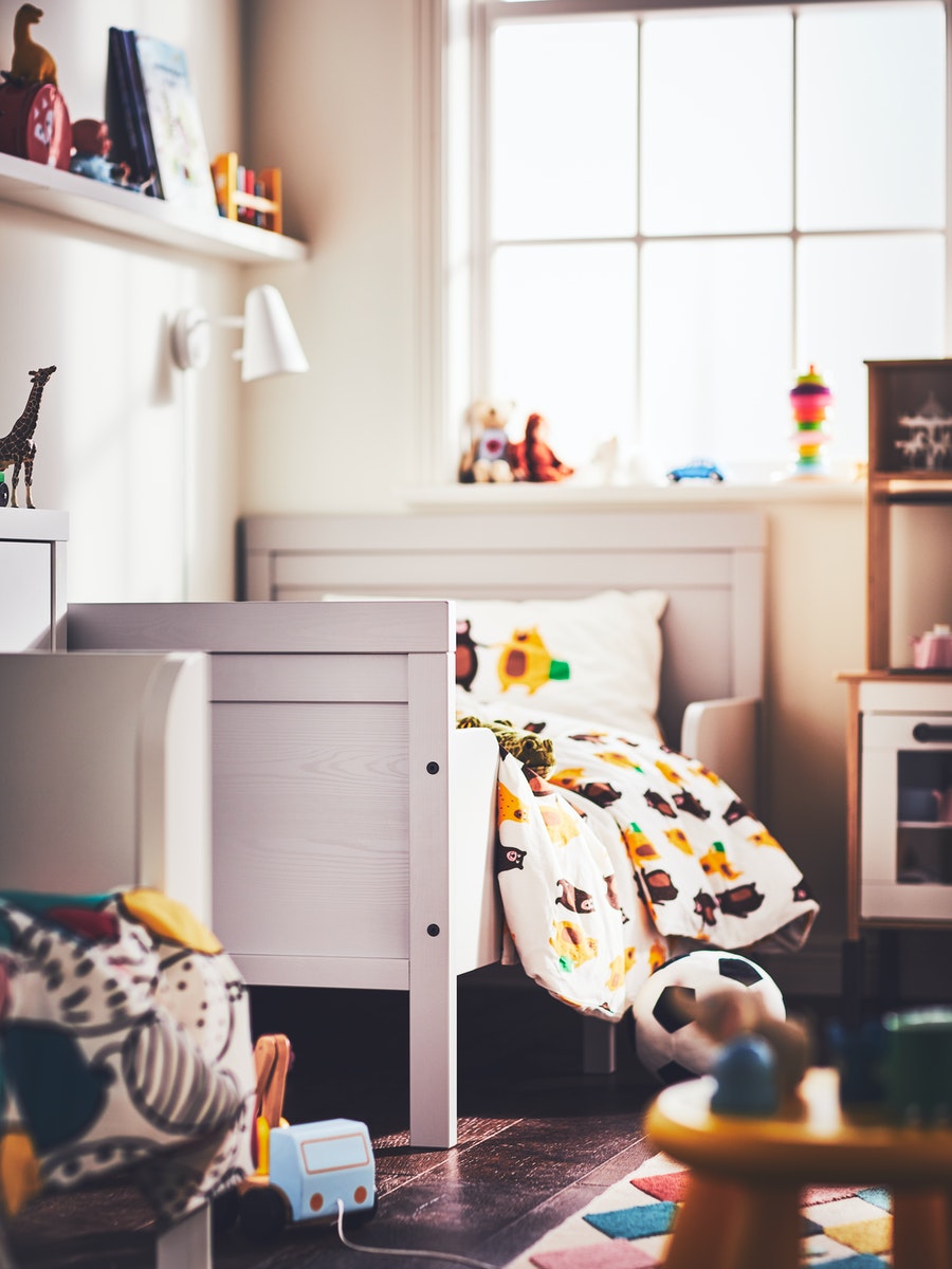 年幼的孩子共用一間房,而房間布置亦能陪伴他們成長。雖然他們年紀尚幼,但從玩具以至寢具,房內的布置無不反映他們的不同個性。