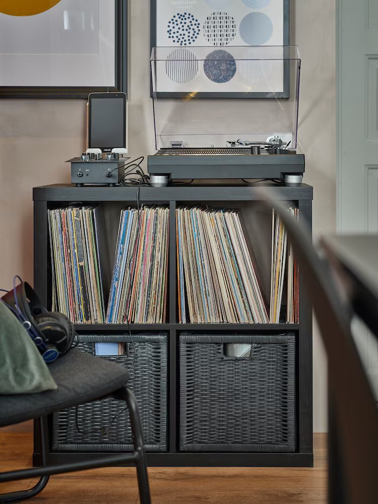 吃飽後當然要放鬆心情,把你珍藏的黑膠唱片擺放在恰到好處的層架,重溫昔日年華,然後在客廳播放音樂,體驗一把當 DJ 的樂趣。