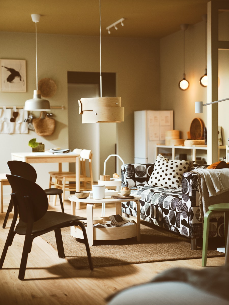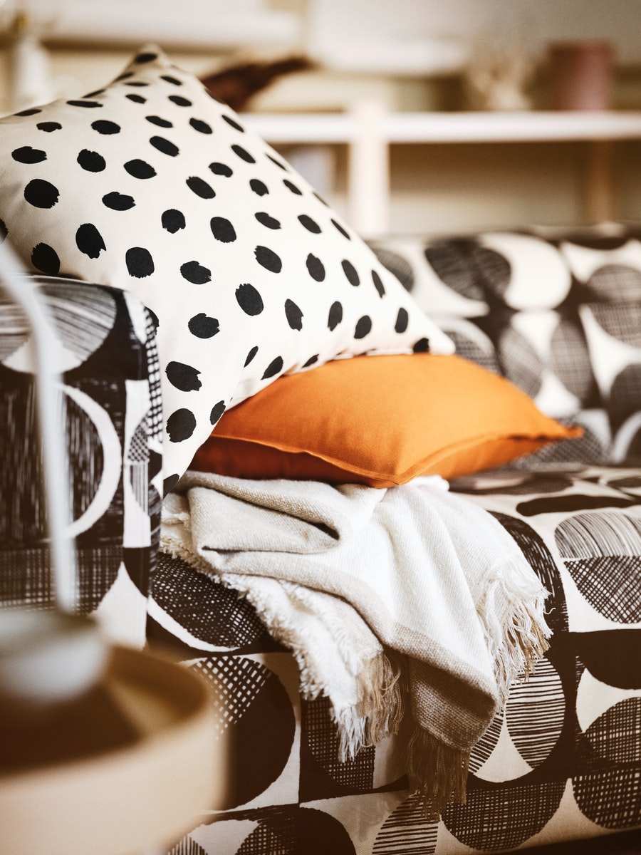圖案奪目的梳化不但是焦點所在,也是與朋友歡度寫意時光的舒適角落。無論是唱片,還是茶几上的美味小食,所需物品伸手可及,難怪下午茶往往變成宵夜。