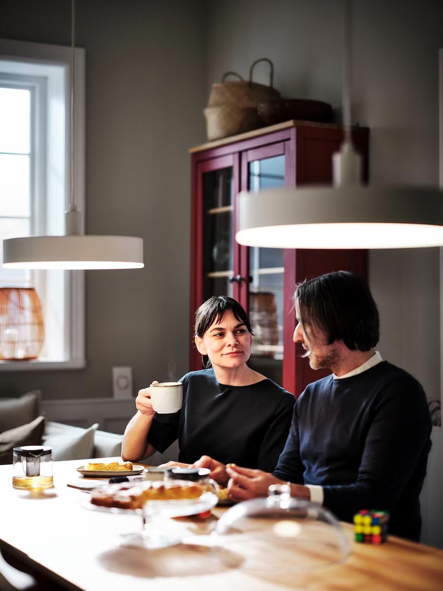 蛋糕烤好了,茶也泡得剛剛好;接著只需要調暗燈光,挑選最愛的輕柔音樂,就能全心享受這個迷人夜晚!試試IKEA智能家居系統,輕鬆點選按鈕來打造自己想要的夜晚氛圍。再也不用忙著選音樂或調整燈光,把珍貴時光留給心愛的家人。