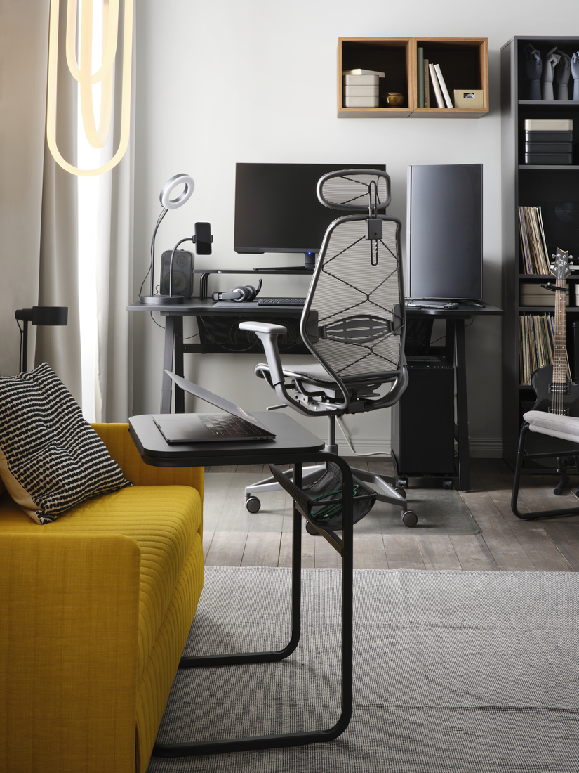 想打造完美的電競專區,首先要有一張實用的電競檯。UTESPELARE電競檯設計穩固,配備電線整理網和通風金屬網,更可手動調校高度,以及提供兩種擺放檯面的方式。特深的設計能擺放大量遊戲配件,配合類似STYRSPEL的穩固舒適、承托力佳和可以調校的電競椅,自然所向披靡。