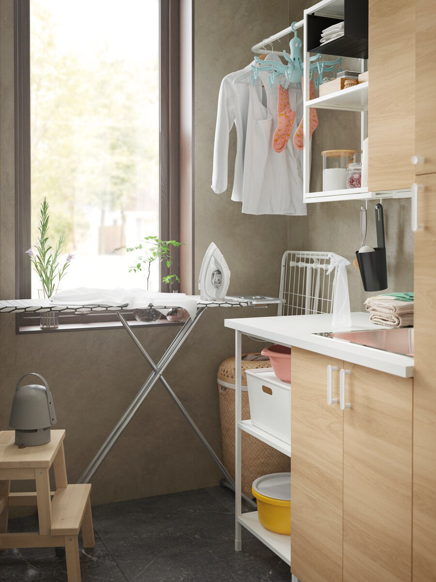 我們為中型家庭設計了具北歐風格的洗衣區,洗衫時加倍方便,也能節省時間。秘訣是利用巧妙儲物、分類衣物的空間、可疊起的新款家電,以及預留晾曬衣物的地方。誰能想到洗衫也能如此寫意?