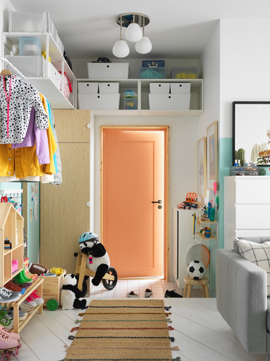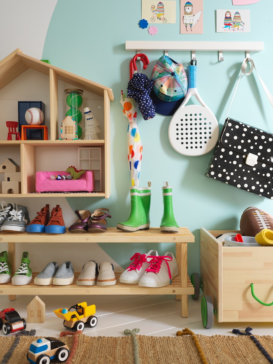 大人和小朋友可以在這裡做好出門的準備,拿取需要的物品,並放下其他不用的東西。回到家裡後,便可以馬上放下鎖匙等物品。這個儲物組合就像空白的畫布,讓私人物品成為焦點,形成兩種獨特風格。