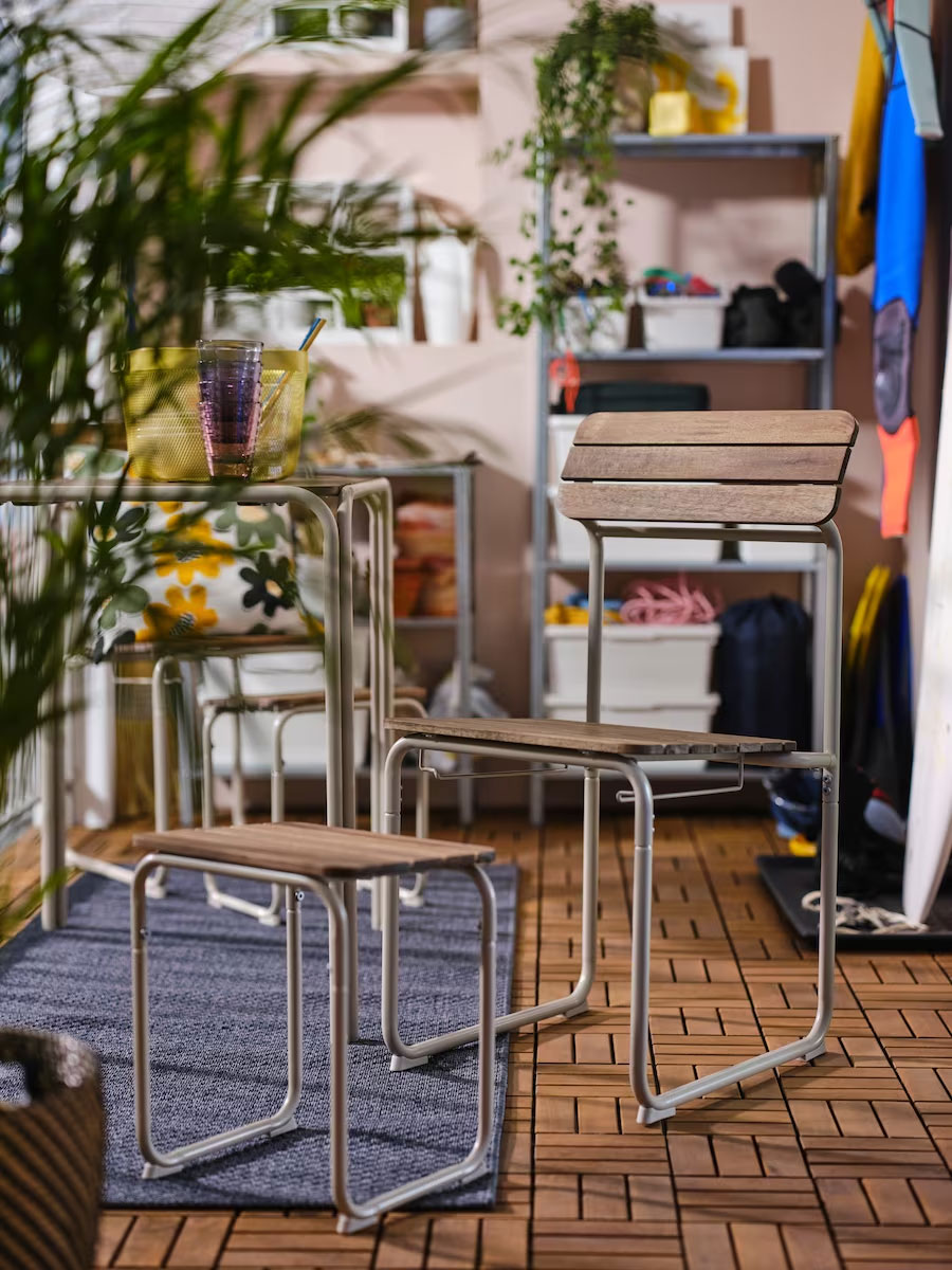 想在戶外用餐、看書或聽音樂,首先要準備一張檯、兩張椅子和兩張凳,瞬間便能變出小巧實用的布置,還有空間讓你享受園藝樂趣,見證我們最喜歡的布置魔法。