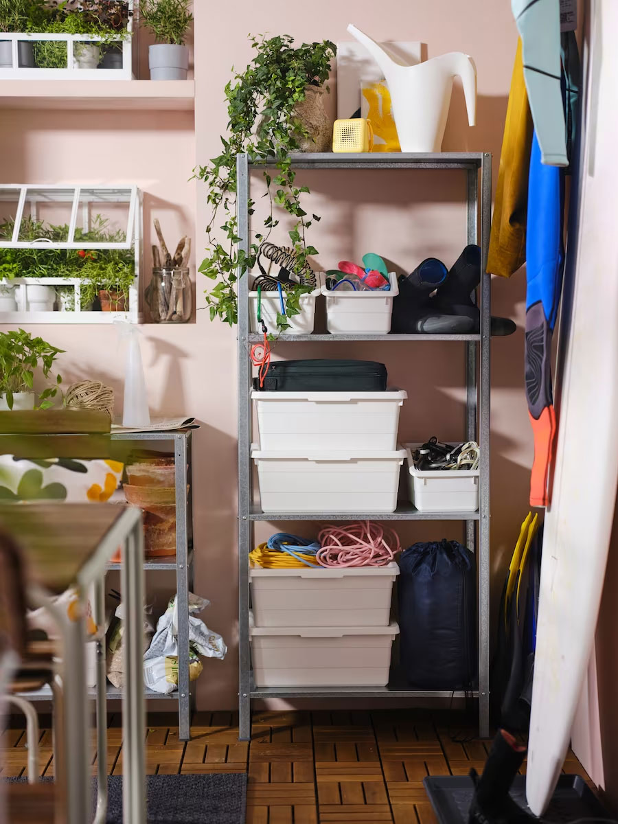 即使只是露台的一小幅牆,也能變成你最喜歡的角落。以穩固輕巧的層架組合擺放植物和備用的花盆,在戶外用餐時便能隨時享用新鮮香草。記得別打擾在苗圃裡生長的幼苖!