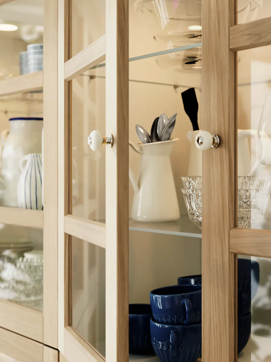 寬敞的玻璃門櫃是這個廚房的中心,也是心愛日常用品的安樂窩。櫃內照明突顯你珍藏的古董和傳家之寶,為典雅精緻的布置增添獨特風格。