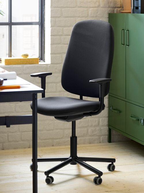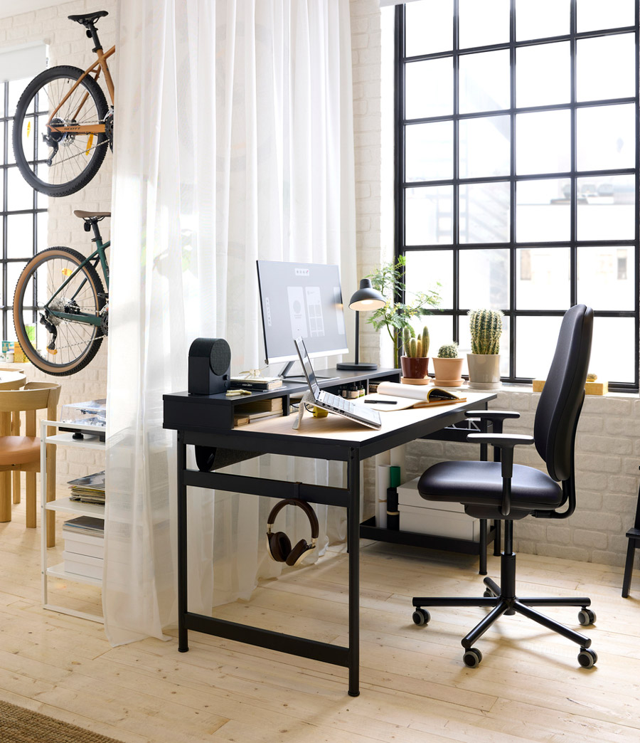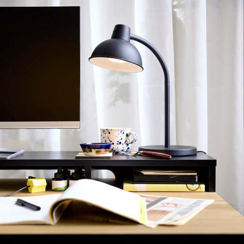 若想掛起耳機或在寒冷的早上穿著的外套,可以利用書枱附設的掛鈎,而雜亂的電線可以全部藏於枱面下,保持整齊。最後,以新登場的喇叭播放喜愛的音樂,讓你更加專注。若需要長時間工作,SMÖRKULL辦公椅提供合適的承托,讓你一邊工作,一邊享受舒適體驗。可清洗的椅套亦方便打理,保持座椅潔淨如新。這個簡單又實用的居家工作區布置,讓你能全情投入工作(又不用踏出家門)。