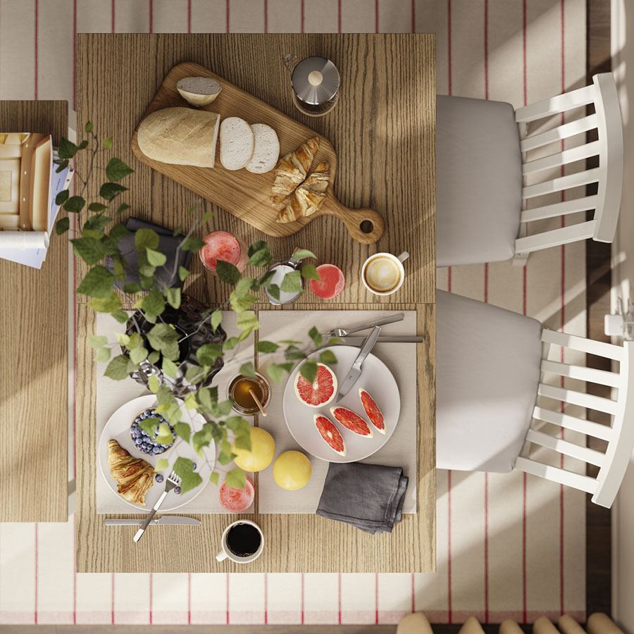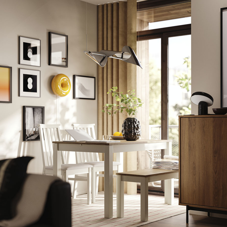 這個組合包括一張伸縮餐枱、兩張舒適的餐椅和一張可容納更多人的長凳,令用餐體驗更輕鬆靈活。無論是獨自享用早餐,還是招呼客人,也能盡應所需,而且風格出眾,完美襯托美食,自然成為社群媒體上的焦點!