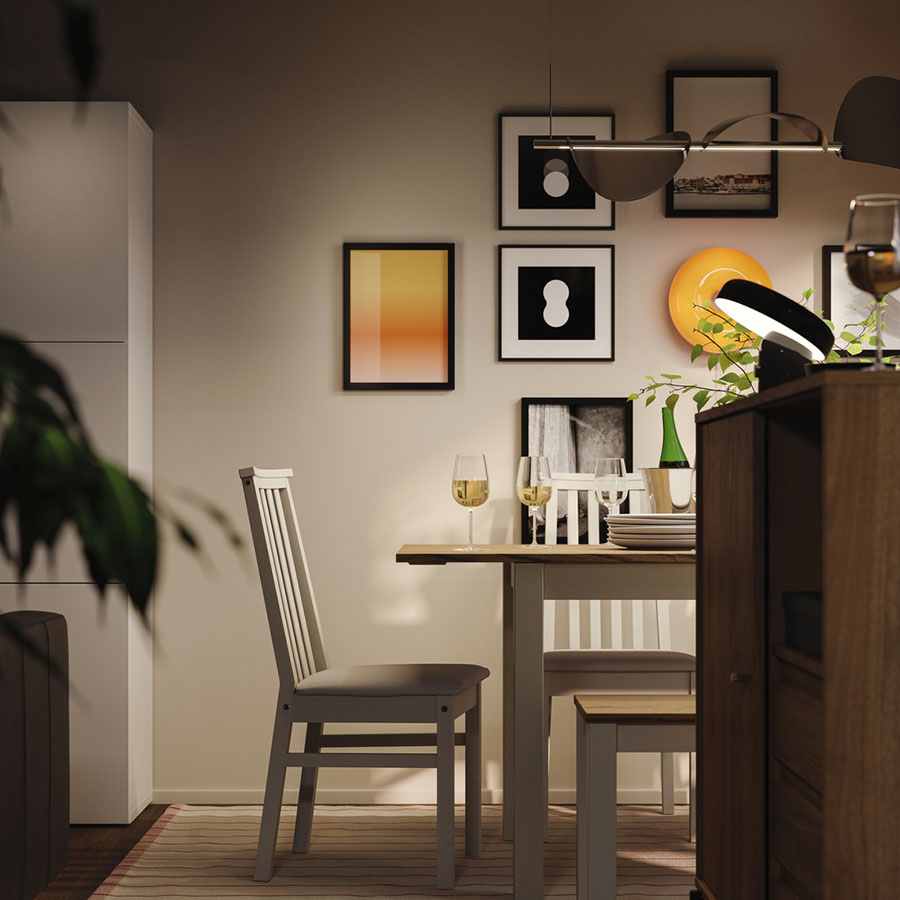 此外,使用IKEA Home smart 1應用程式輕鬆控制燈光,營造氣氛。只要簡單一按,便能開燈、調校光暗、改變智能燈泡的顏色、設定開關時間或氣氛。派對現在開始!