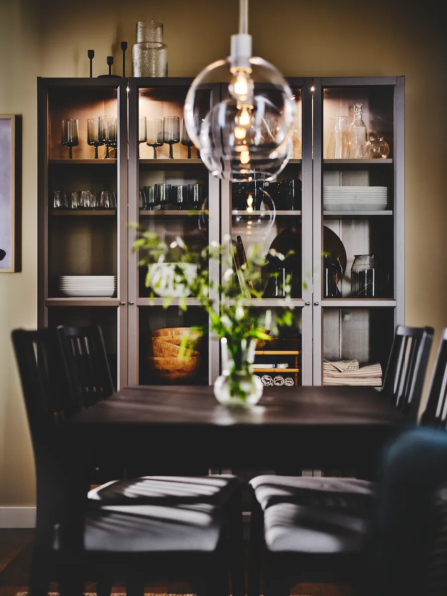 燈光和音響能夠瞬間改變氣氛。這個畫作內嵌無線喇叭,讓你播放適合當下活動的音樂,而這些手工吹製的玻璃燈配備智能燈泡和遙控器,讓你隨時調節飯廳氛圍。