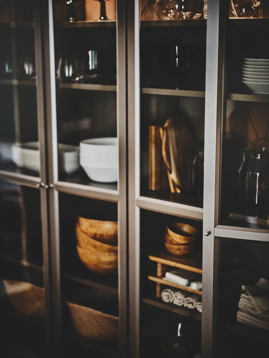 與其把家裡漂亮的碗碟藏起來,不如展示出來炫耀一番!利用嵌入式的燈光便可將眾人的注意力聚焦在你最得意的收藏品,而可調式的層架能創造適當空間,擺放碗碟瓶罐等大小不同的物件。