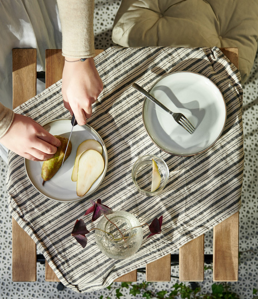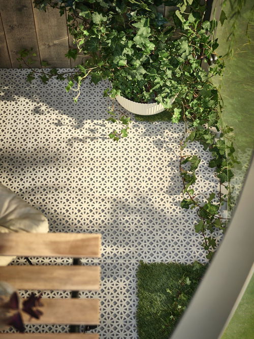一塊簡單的抹布,也能將戶外餐檯變成田園藝術品,而圖案低調的淺色地板,亦能瞬間將空間昇華。如果覺得地面太單調,何不簡單加一塊人造草皮?
