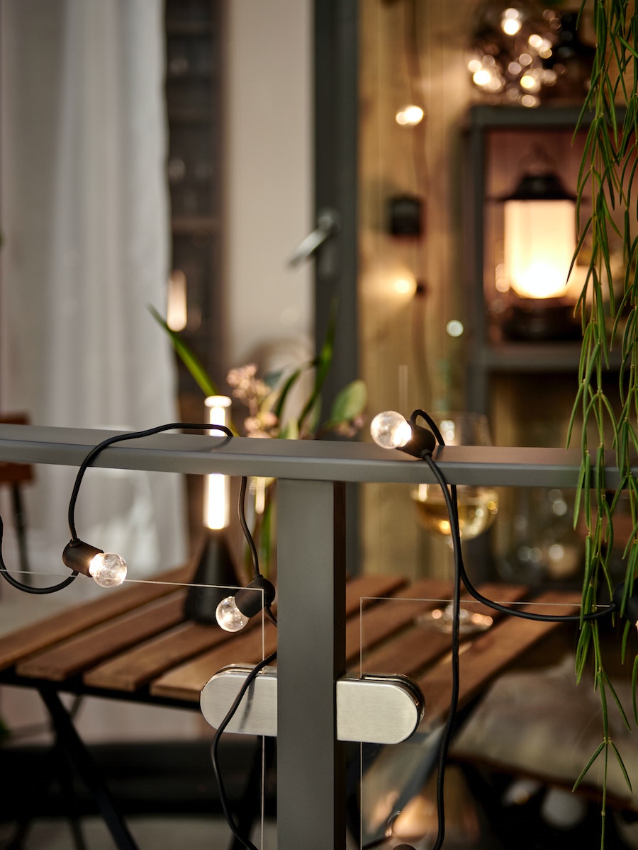 這個露台利用獨特的布置,形成懷抱般的效果,讓人感到温暖親切。有些裝飾燈串掛在欄杆、有些掛在牆上,有些甚至放在燈籠內,幾乎遍佈每個角落,展示燈光的迷人魅力。快點開燈,讓它們發光發亮!