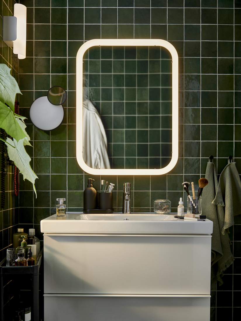 浴室鏡是浴室的重要位置,因此需要在四周加裝實用的照明。內置照明的鏡子是小浴室的好幫手,能均勻分散光線,遠近也看得清楚。