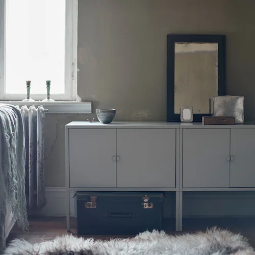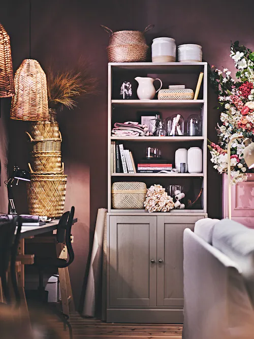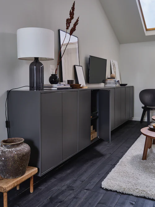 正在尋找布置灰色儲物櫃的靈感?不妨試試中性色調的擺設,輕鬆塑造寧靜優雅的效果。暖色木材與灰色也十分相襯,你更可以混搭陶瓷、玻璃和木材等物料,打造奪目布置。