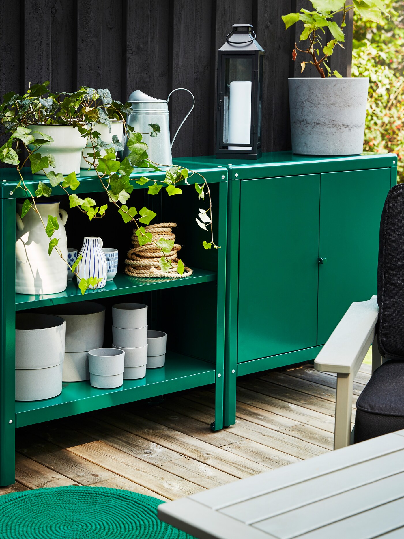 層架組合、貯物長几、貯物櫃、貯物箱和掛鈎能有效收納餐具、咕𠱸和玩具等物品,令你在戶外活動時更加方便,不用經常穿梭屋內。