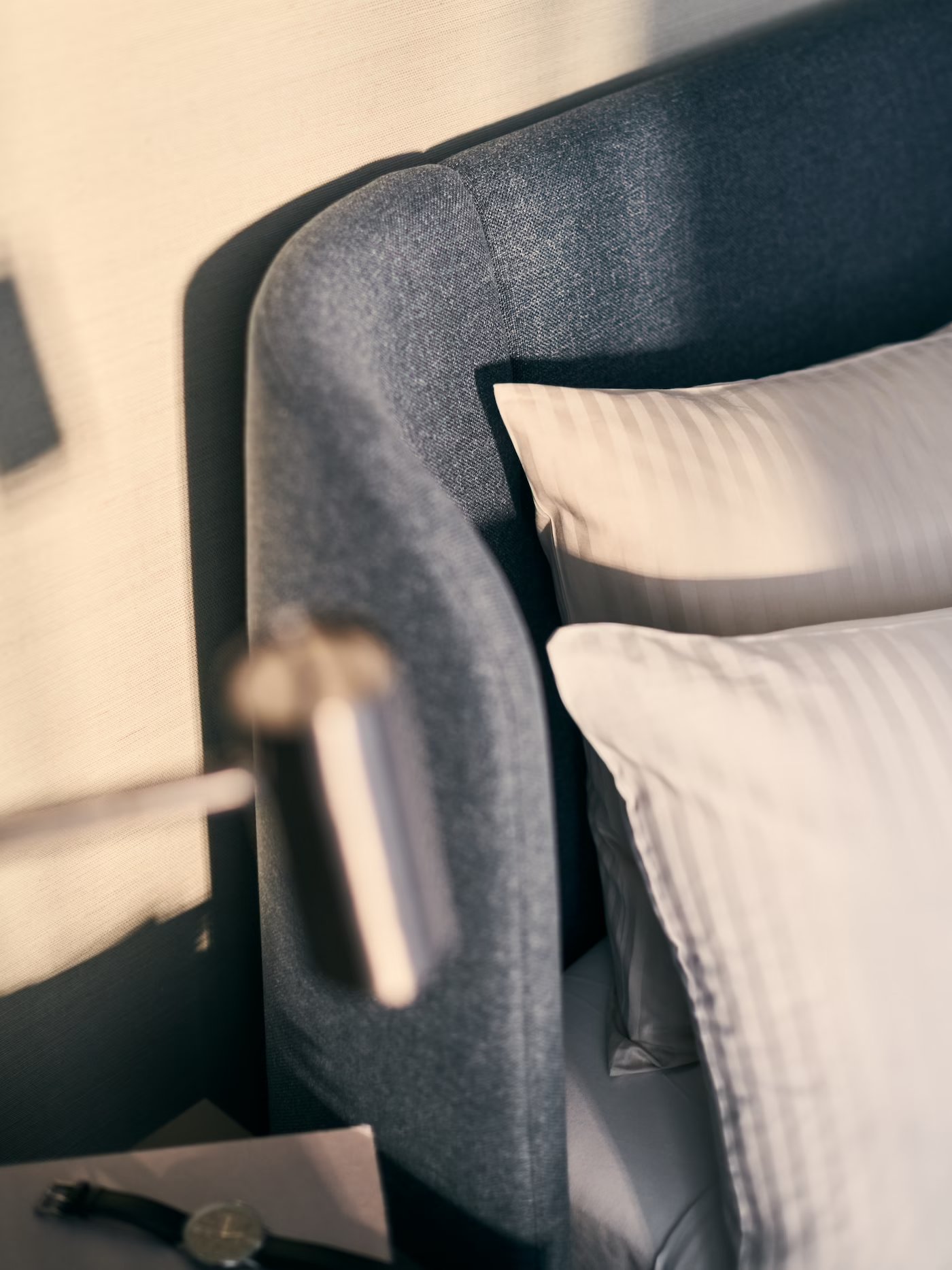 由Ola Wihlborg設計的TUFJORD床架TUFJORD 軟墊式床架以優質物料製造,細節精美,為睡房增添柔和奢華的感覺。Ola說:「當我設計TUFJORD時,我想盡量提高舒適度和柔軟度,在床上營造猶如擁抱的感覺。弧形床頭板形成私密的空間,讓你寫意閱讀、擁抱或在漫長的一天後放鬆休息。線條優美的金屬床腳和柔軟精緻的軟墊,也令睡床充滿個性。」 |