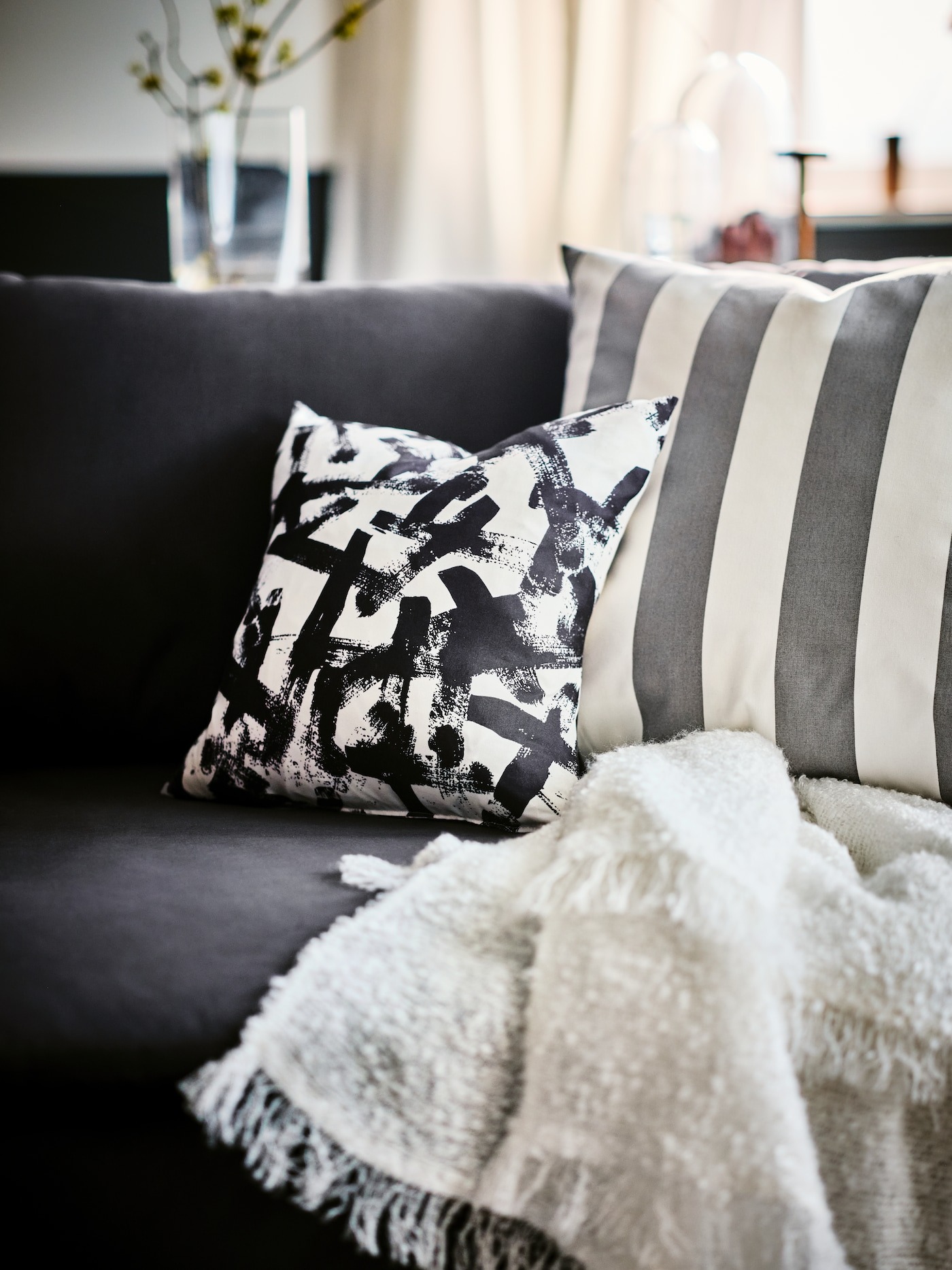黑白色基調不但奪目,亦容易配搭和加入不同元素。這裡便加入金色和圖案簡約的咕𠱸和布藝產品,增添意想不到的新意。