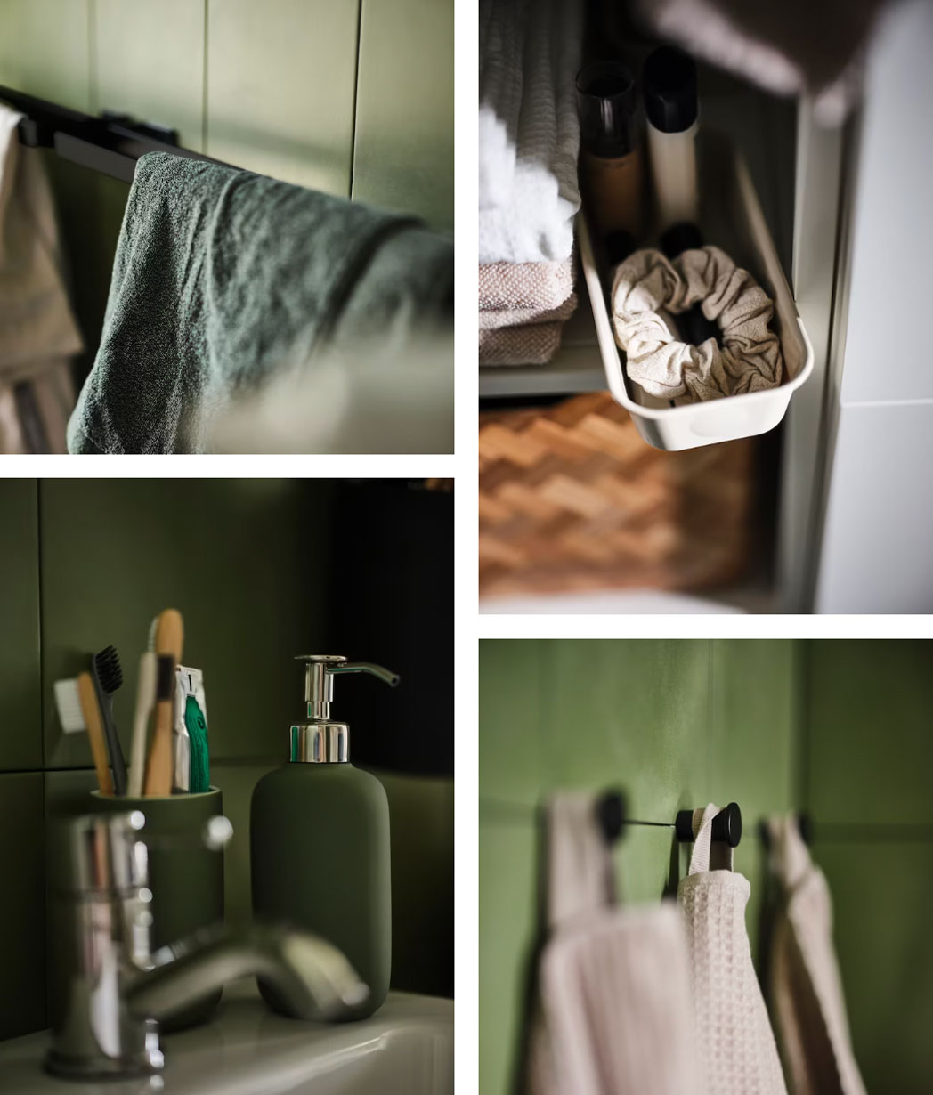 空手道班以至攀岩等各類活動,很可能會令全家共用的浴室一片混亂。安排好淋浴的次序和時間,便可以提高效率,加上大量層架、抽屜、掛鈎和掛桿,亦令一切井然有序。