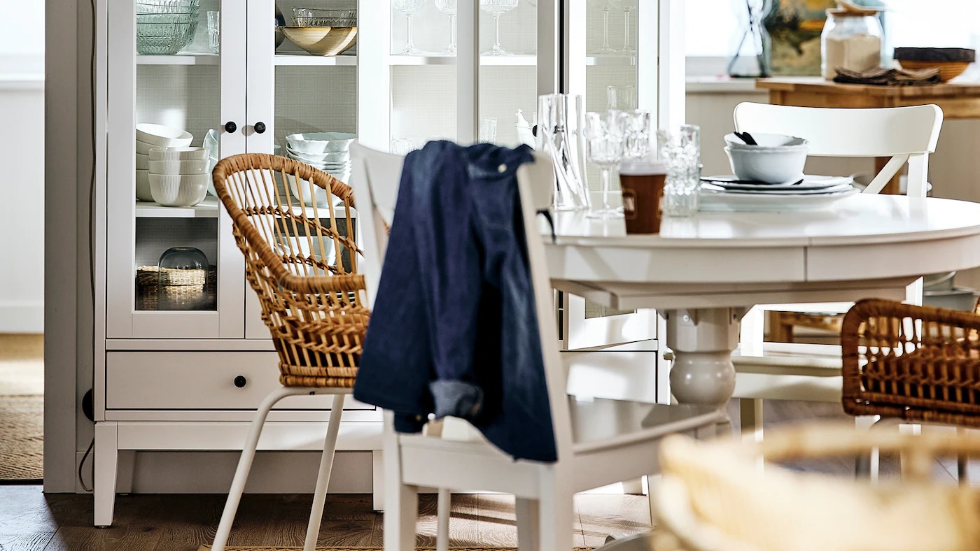 最後……請坐最後配上椅子,便能打造散發鄉村味道的飯廳,而選用兩種不同款式的餐椅,更可以證明現代與傳統風格可以和諧並存。挑選兩張在農舍廚房常見的餐椅,再加兩張現代織藤扶手椅。以人手編織而成的藤椅質感立體精緻,巧妙平衡時尚外型。現在,可以好好享用晚餐了! |