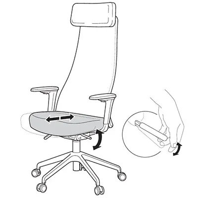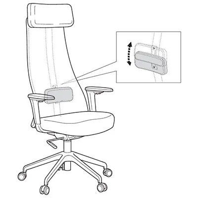 除了基本的座椅高低調整,讓腳底板可以自然碰地,起身更省力之外,高背人體工學椅,可調整頭枕高度,避免長期緊盯螢幕時造成頸部前傾。IKEA部分的椅款有自動後傾10-15度的功能,更能降低腰椎壓力。