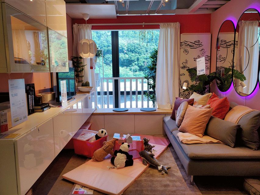 想在客廳打造一家三口各自的專屬小角落?不妨利用活動貯物箱將小朋友的玩具整理妥當;拉出咕𠱸打造大人打坐冥想的場地,隨時移動改變空間用途,舒適寫意的專屬角落便大功告成。