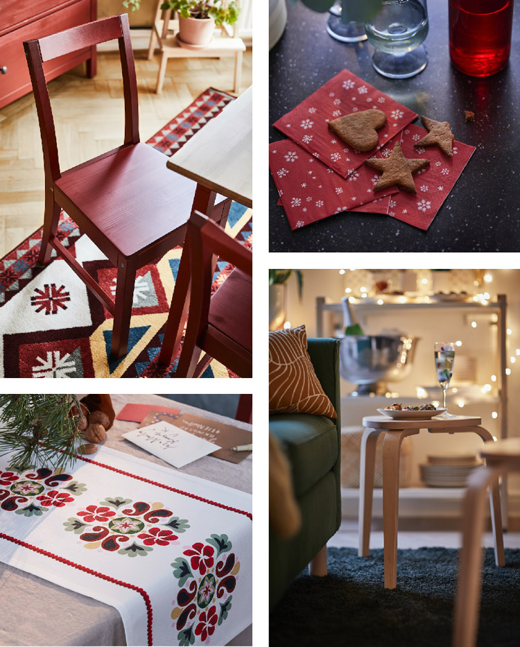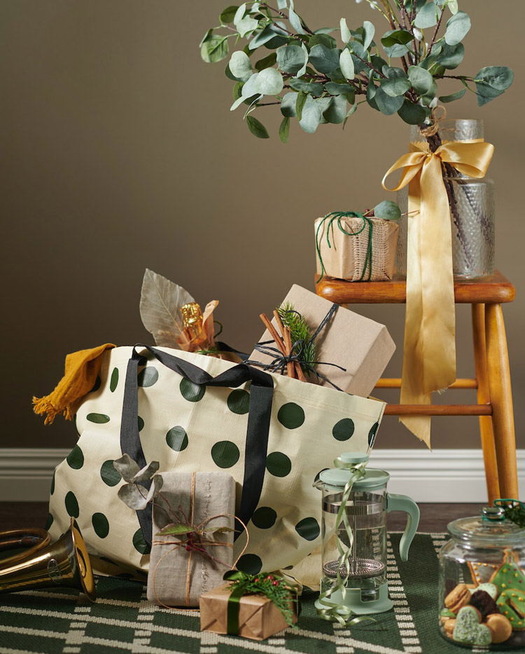 使用 VINTERFINT 禮物袋,讓禮物更精巧用心。還有禮品標籤、膠帶和繩子,發揮你的巧手創意,試試用包裝紙來製作三角旗、花環和裝飾品吧~