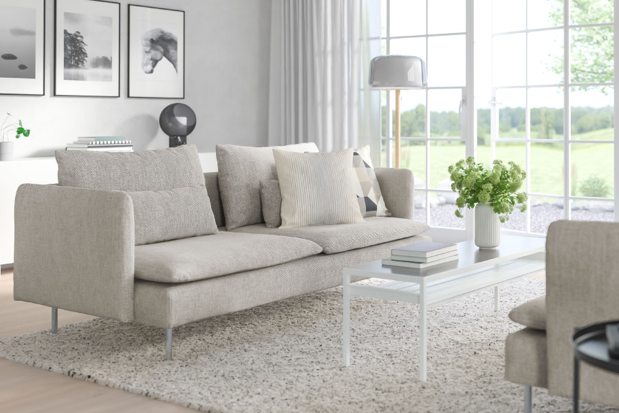 座椅低而深,包覆感十足,貼合身形,提供身體舒適支撐。布套可更換及清洗,讓你輕鬆為梳化換新裝。高腳流線設計方便清潔梳化底下地板。