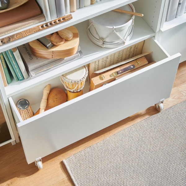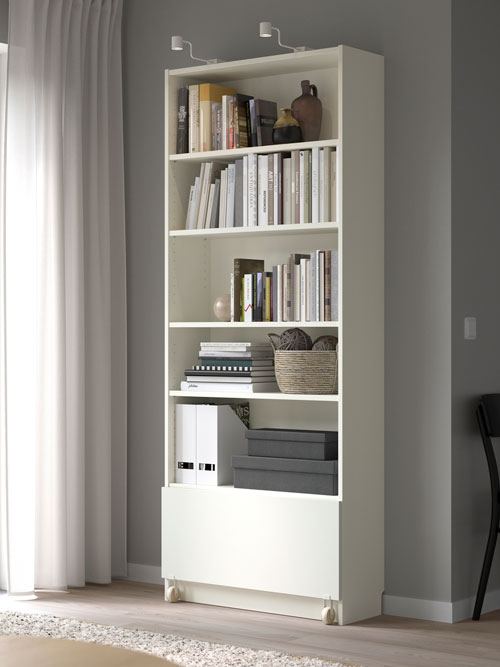 想要更多空間擺放高身花瓶(或者長頸鹿擺設)?放心!BILLY書架的層板距離能輕易調校,靈活配合大型儲物箱或小型物品和收藏品。