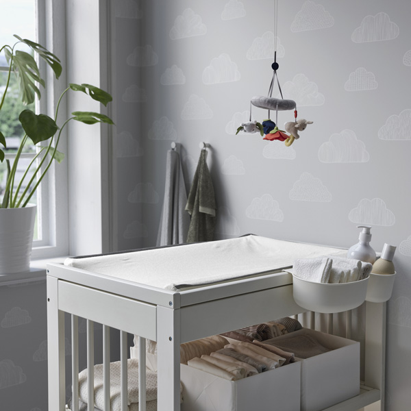 IKEA更換尿布枱為你提供一個舒適的高度,方便你給嬰兒更衣,更有充足的儲物空間,讓你可以在換尿布時一手抱住寶寶,確保安全,另一隻手輕鬆拿取各種所需物品。