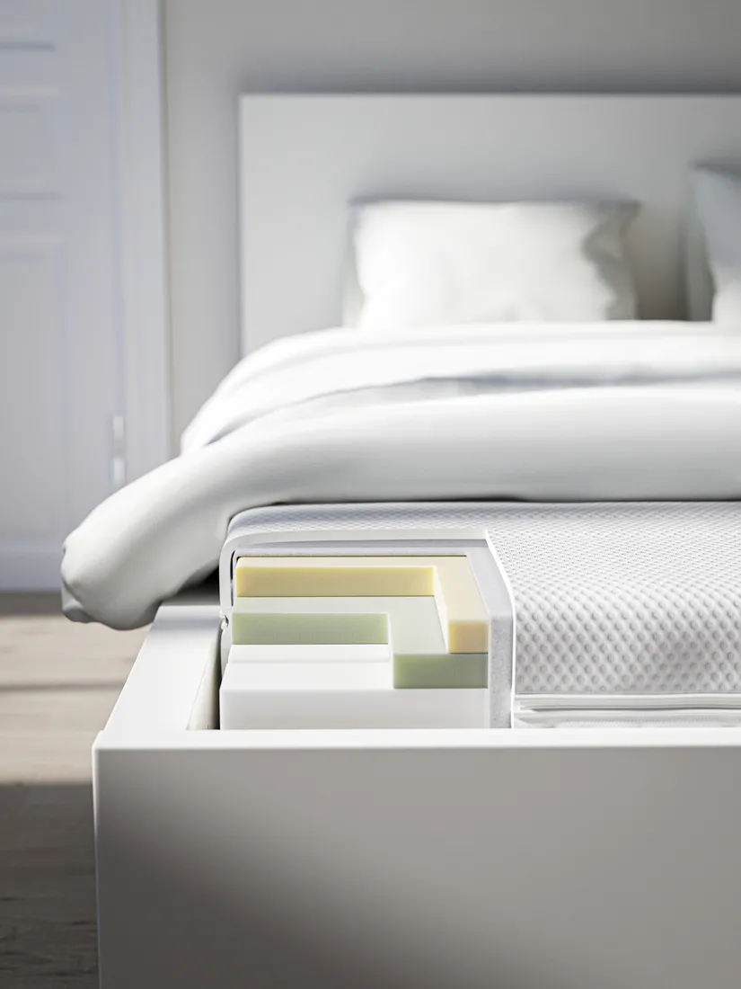 我們的泡膠床褥結合了記憶泡膠、柔軟泡膠和高彈性泡膠,為您提供完美的舒適體驗。每一層設計都旨在支撐、符合和緩解壓力。底部是堅固的高彈性基層,上面覆蓋著柔軟的記憶泡膠層,這些床褥層層相疊,帶來獨特的舒適感受。