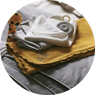 布織品使用可溯源優質棉花,親膚好入眠。不添加有害化學物,織品皆不含拉鍊頭等小零件,保護孩童安全。